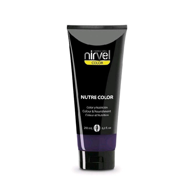 Mascarilla de Nirvel de color morado que ofrece unos resultados visibles y prolongados en el tiempo: 1.Nutrición profunda. 2.Brillo extremo. 3.Reflejos naturales e intensos. CONTENIDO 200ML