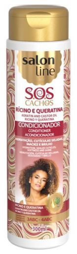 Acondicionador Ricino y Queratina. hidrata el pelo y proporciona brillo. Modo de empleo: Aplicar uniformemente en el cabello mojado. Masajear suavemente Dejar actuar de 1 a 3 minutos. Enjuagar. ara obtener mejores resultados, utilice la línea completa SOS Rizos Salon Line. Uso diario.